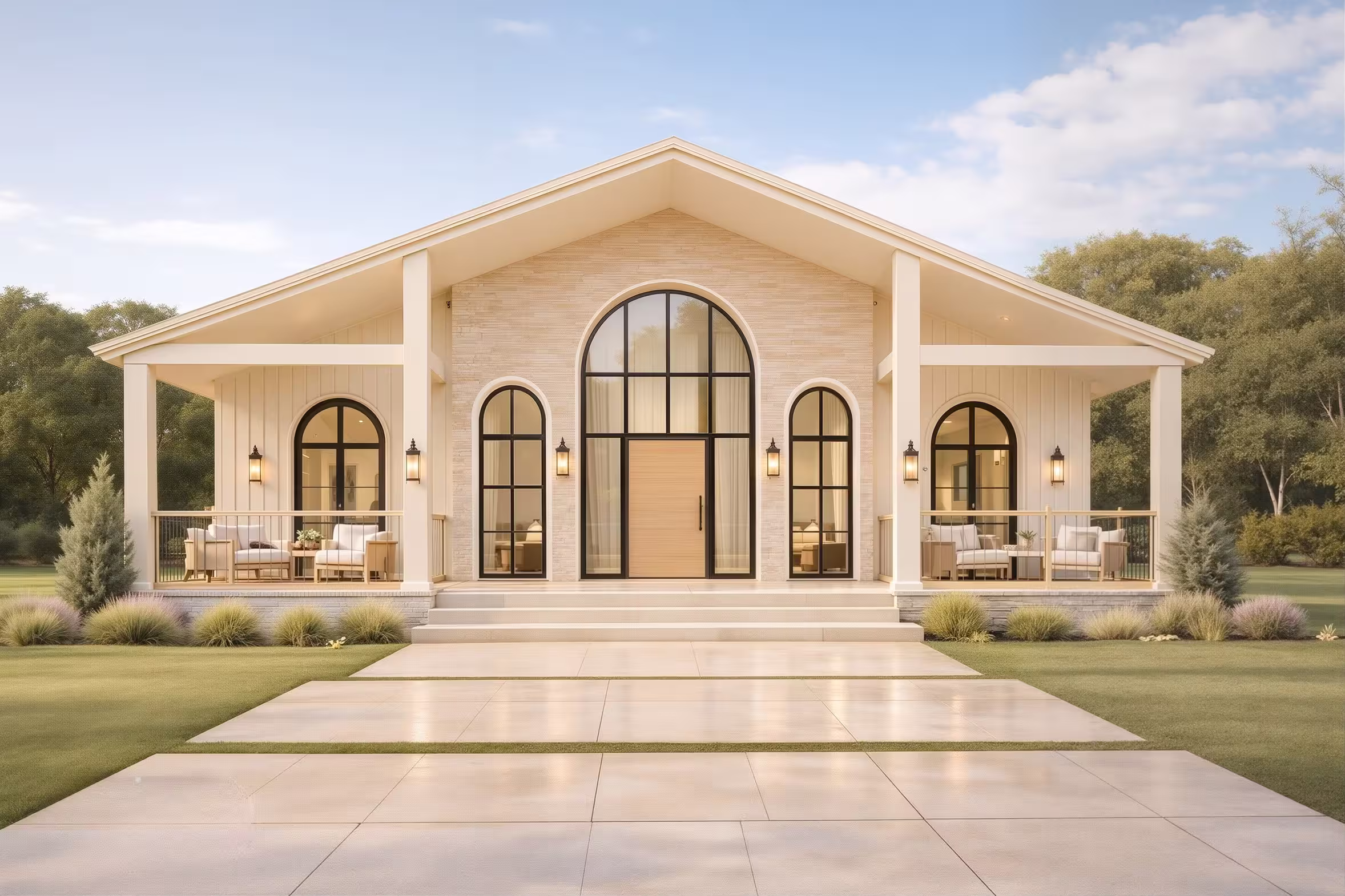 Wide front porch enhancing curb appeal